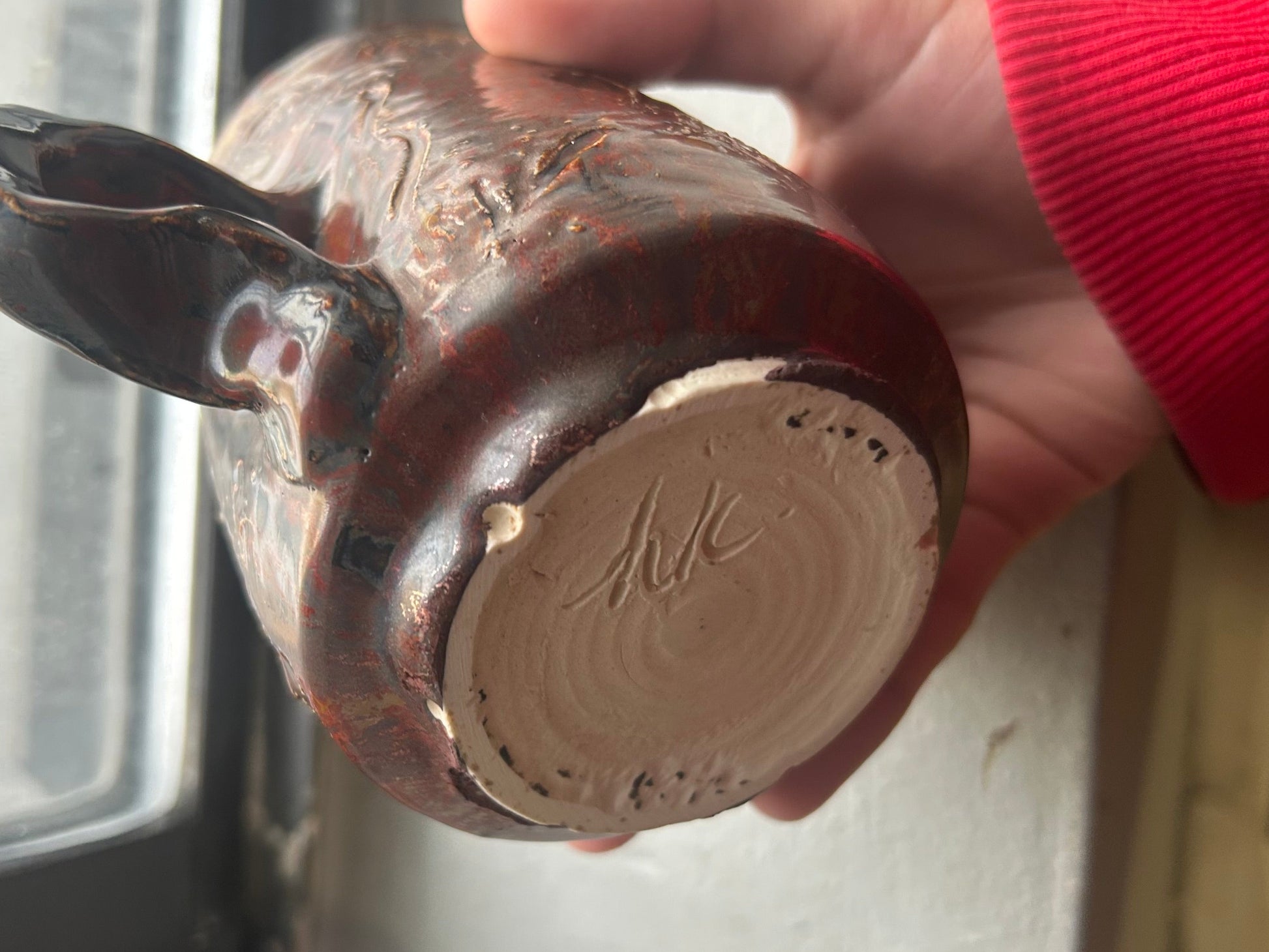 - This mug is a SECOND meaning it has small aesthetic flaws but is still fully functional. The glaze ran on this piece (see last two pictures) but it has been grinded down and is completely smooth to the touch